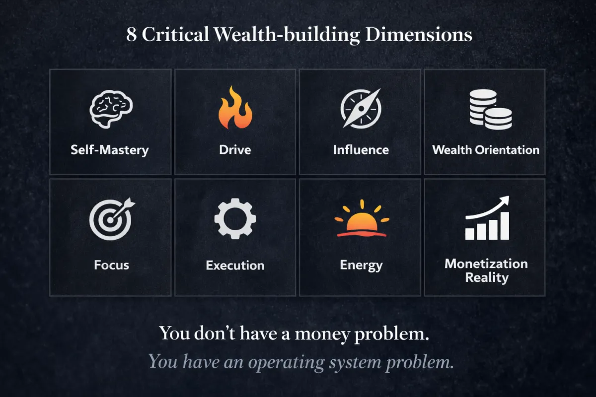 You’ll evaluate yourself across 8 critical wealth-building dimensions, including: